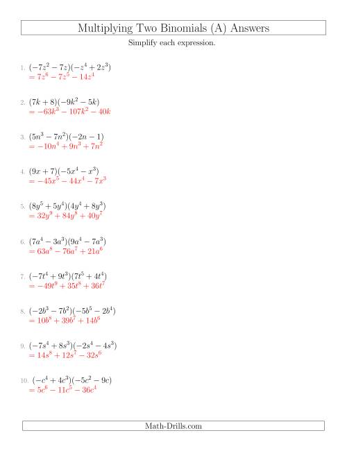 Multiplying binomials two math worksheet trinomials binomial polynomials algebra worksheets practice trinomial drills terms informationMultiplying binomials worksheet (pdf) and answer key. 29 scaffolded 11 best images of multiplying binomials worksheetMultiplying binomials worksheet.